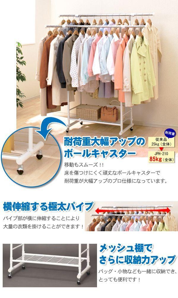 ≪ハンガー2本タイプ◆メッシュ棚付≫伸縮パイプハンガー JPH-210 ホワイト〔衣類ハンガー 収納ハンガー コートハンガー 洋服掛け 衣類収納 衣替え 一人暮らし 洋服〕 アイリスオーヤマ ステンレスピンチハンガー