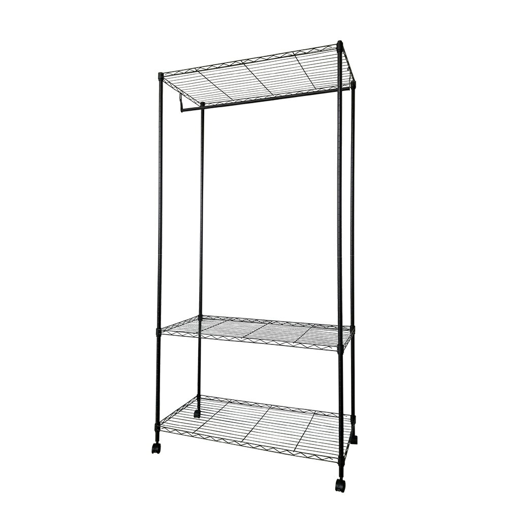 ポール直径14mm カーボンスチール製 ワードローブ 3段 メタルラック ラック ハンガー クローゼット 棚付 洋服収納 幅75×高さ160×奥行45(約)cm ◇FAM-CJ-C1124