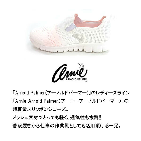 ■ポイント■ 「Arnold Palmer(アーノルドパーマー)」のレディースライン 「Arnie Arnold Palmer(アーニーアーノルドパーマー)」の超軽量スリッポンシューズ。