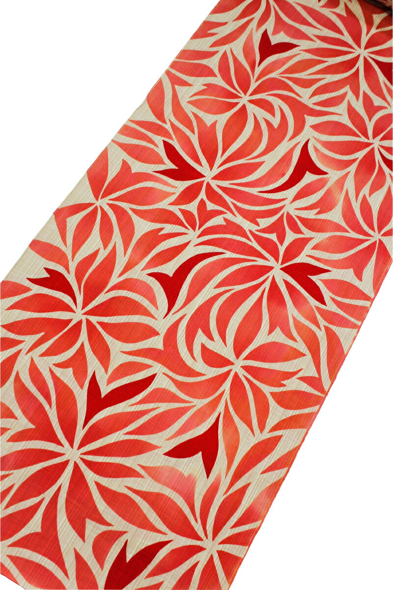 東京三勝染 レディース・メンズ兼用 浴衣反物 小巾 注染 先染め刷毛目生地 紅蓮花 ベージュ 巾40 綿100% 日本製