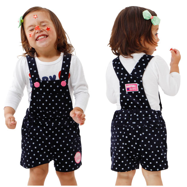 【50%OFF アウトレットSALE】通販限定 ドット柄 ベロア サロペット 1331K ベビードール BABYDOLL ベビー キッズ 女の子 ジャンパースカート オーバーオール ショート丈 秋冬