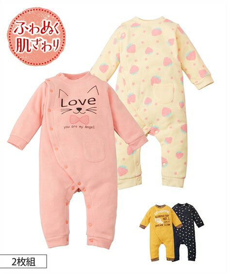あったか裏起毛 プリントカバーオール2枚組(男の子・女の子 子供服・ベビー服) ニッセン nissen マスタード+ネイビー(男の子) ピンク+クリーム(女の子) カラー マスタード+ネイビー(男の子)/ピンク+クリーム(女の子) サイズ 70/80 備考 単位:cm ※サイズの誤差は多少発生します。